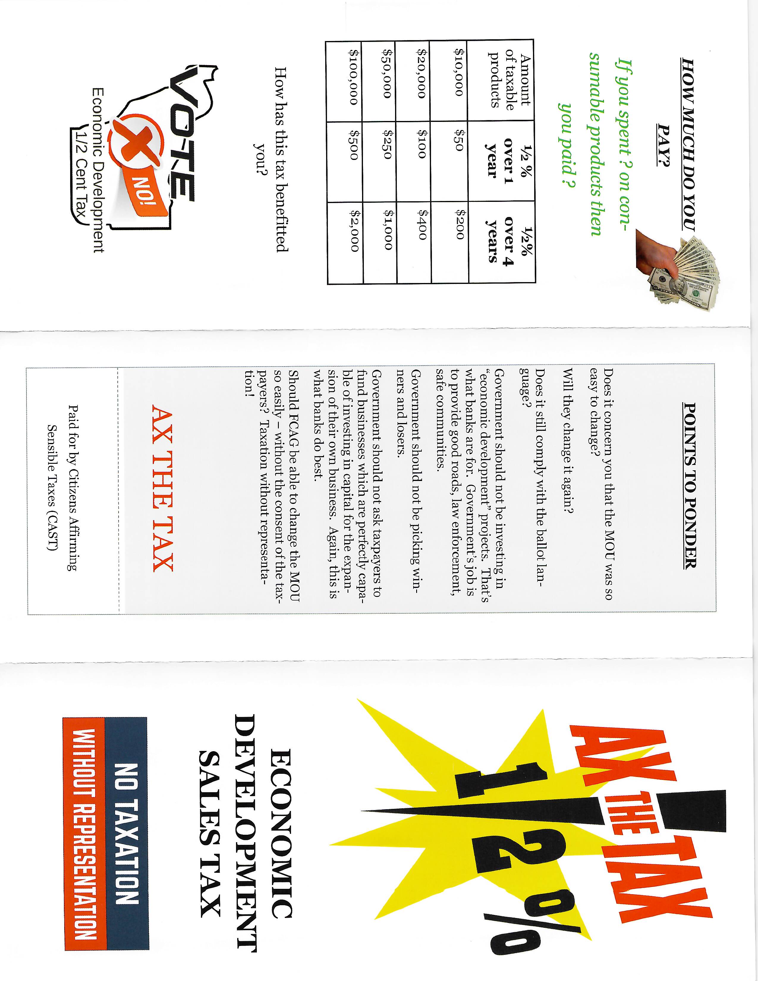 At Citizens of Affirming Sensible Taxes (CAST), our mission is to advocate for fair and transparent taxation policies that prioritize the public good. We believe that public funds should be allocated to clearly defined community projects that benefit all citizens, rather than being used to support private interests. As a united community, we aim to educate, engage, and empower citizens to make informed decisions, ensuring that every tax dollar serves a meaningful and beneficial purpose. Together, we are committed to fostering responsible governance and advocating for the cessation of the current 1/2 cent sales tax until it is restructured to better serve our community.